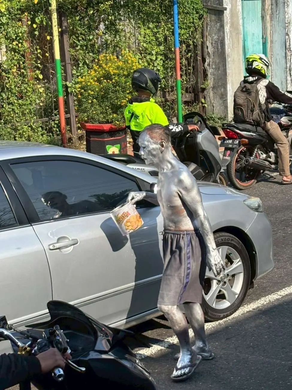 "都市部には、信号待ちの車に一芸を見せたり、雑誌を打ったりすることでチップをもらう人が多くいる。その一部を撮影した。"