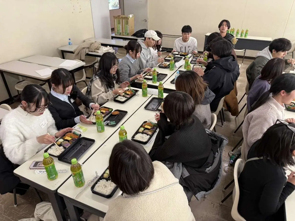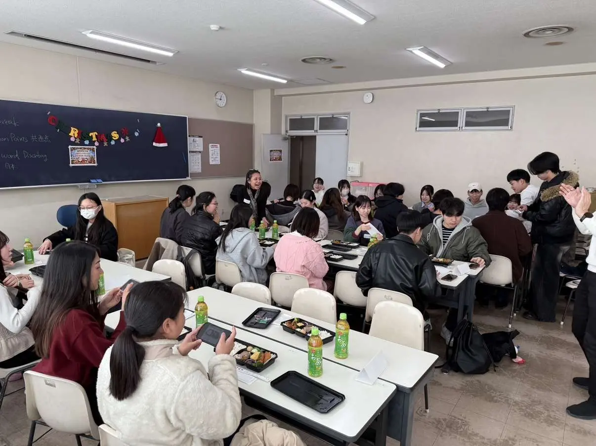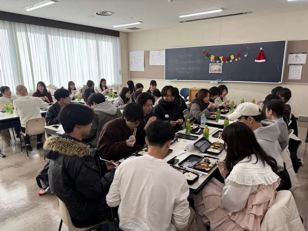 2025年12月23日、お昼休みの時間に、本学部に在籍する交換留学生と日本人学生の相互理解を深めることを目的とした「交流学生と学部生による交流会(クリスマスランチ)」を開催しました。