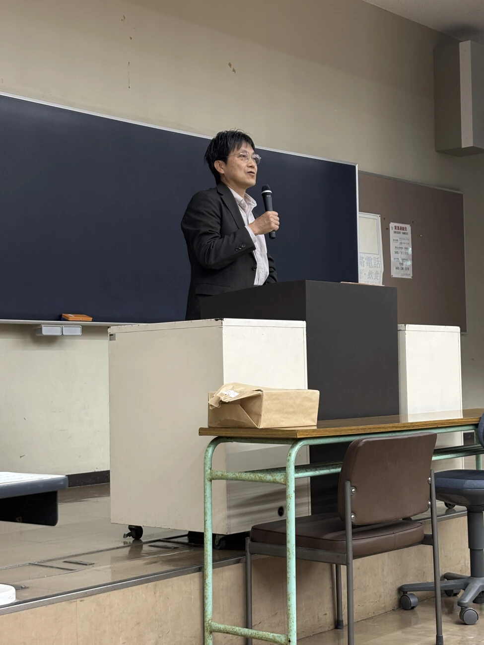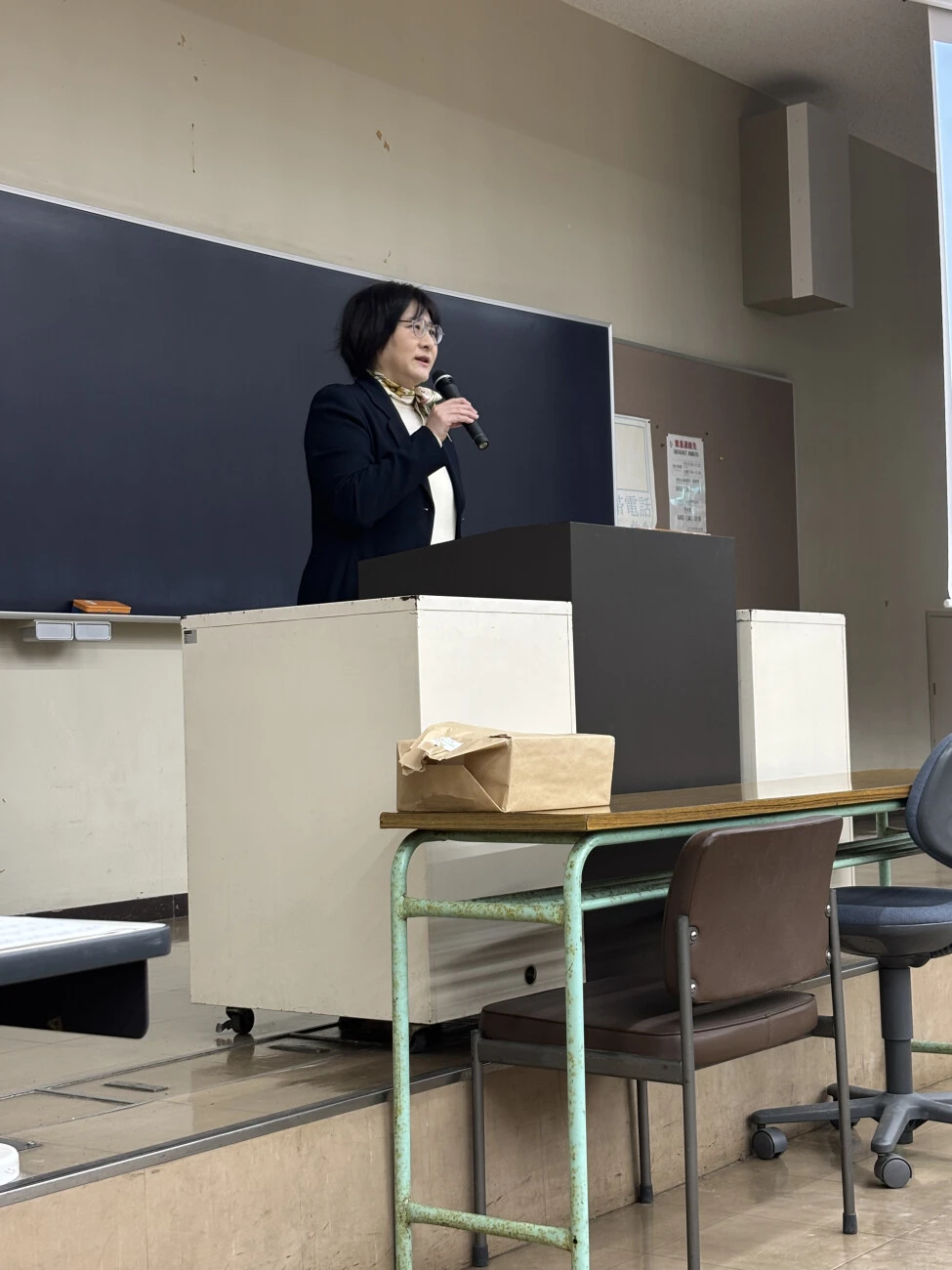 その後、学部事務室より、DBポータルを使った履修登録の方法や、卒業に必要な条件について説明が行われました。