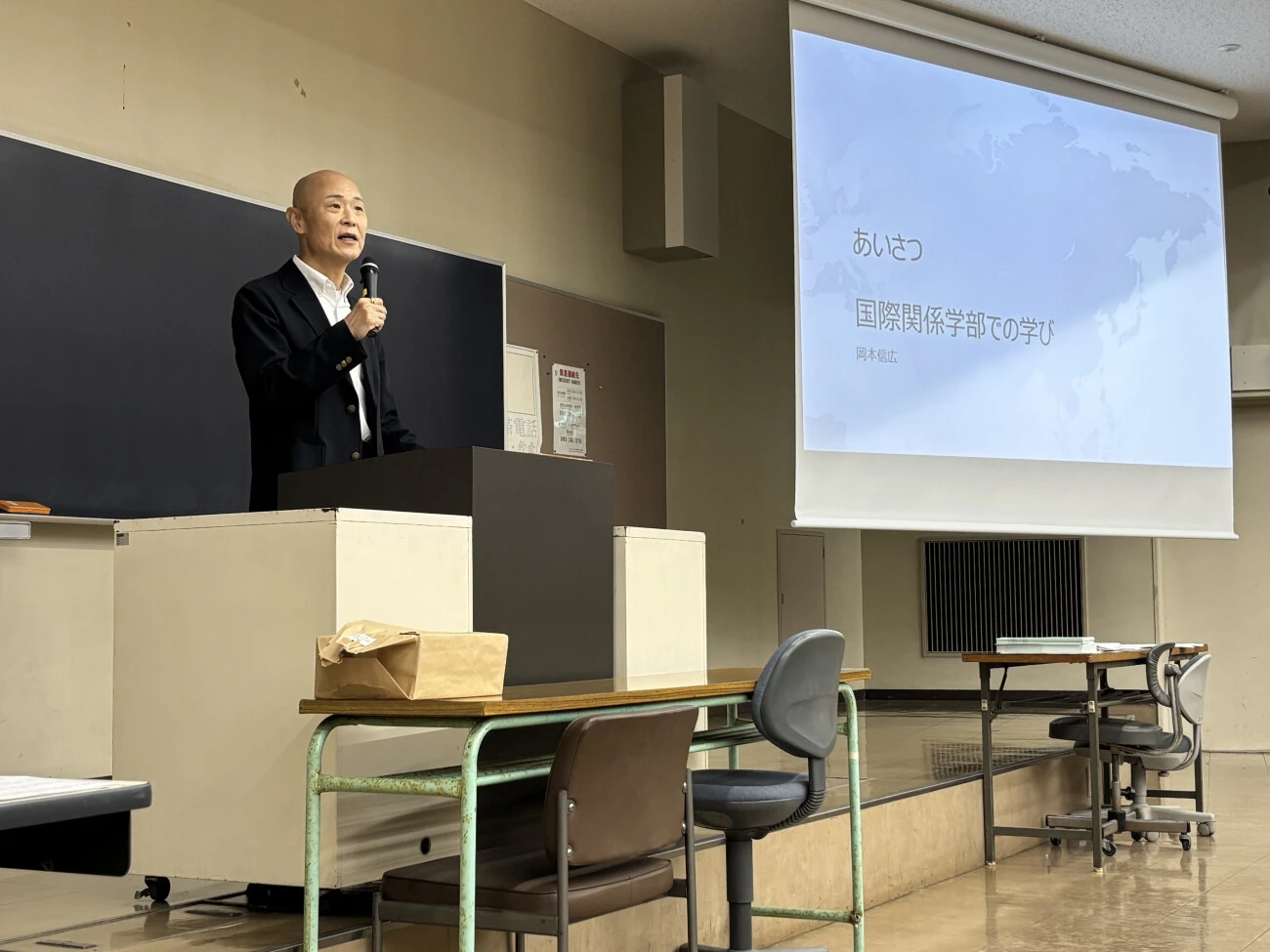 4月2日11時より、学部長の岡本信広教授、国際関係学科主任の遠藤元教授、国際文化学科主任の浦山あゆみ教授から、新入生に向けて歓迎の言葉が送られました。