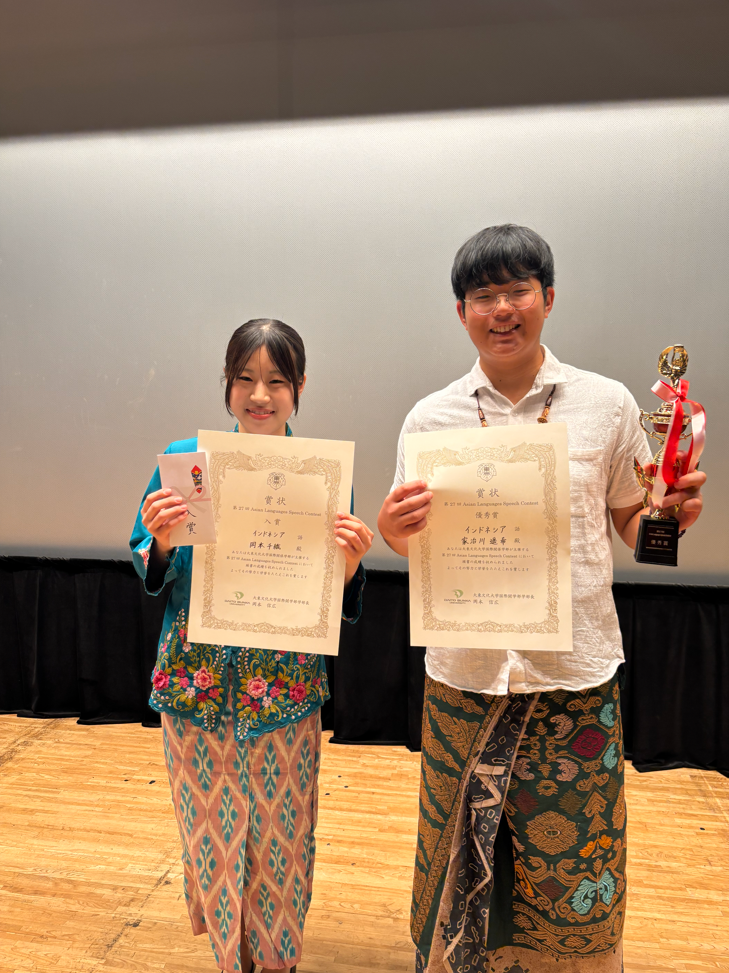 審査委員による厳正な審査の結果、最優秀賞には、髙橋うららさん(コリア語)、優秀賞には、家治川遥希さん(インドネシア語)、金子聖奈さん(タイ語)の2名が選ばれました。