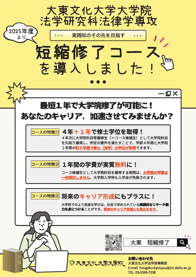 【法律学科/法律学専攻】短縮修了コースを導入!(2024年度~)法律学科