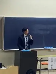 今年度は本学科から大手銀行に内定した4年生、同じく国家公務員に内定した4年生、民間企業で活躍する卒業生の3名にご講演をいただきました。