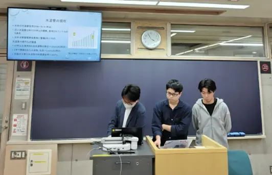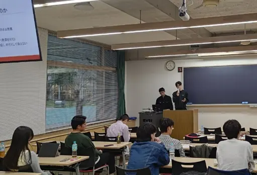 第2部の自由論題セッションでは2つの部会に分かれ、各チームが関心あるテーマを選択して発表しました。小林ゼミの2チームは、「墨田区にみる空き家対策」(担当:本田隼規さん、湯浅尚樹さん)、「公共政策が目指すべき未来:水道管更新事業を事例に」(担当:五安城葵生さん、佐野響さん、齋田航介さん)というテーマでそれぞれ発表を行いました。セッション全体では、商店街の活性化や自治体の熱中症対策など多岐にわたるテーマが検討され、質疑応答や討論も活発に行われました。