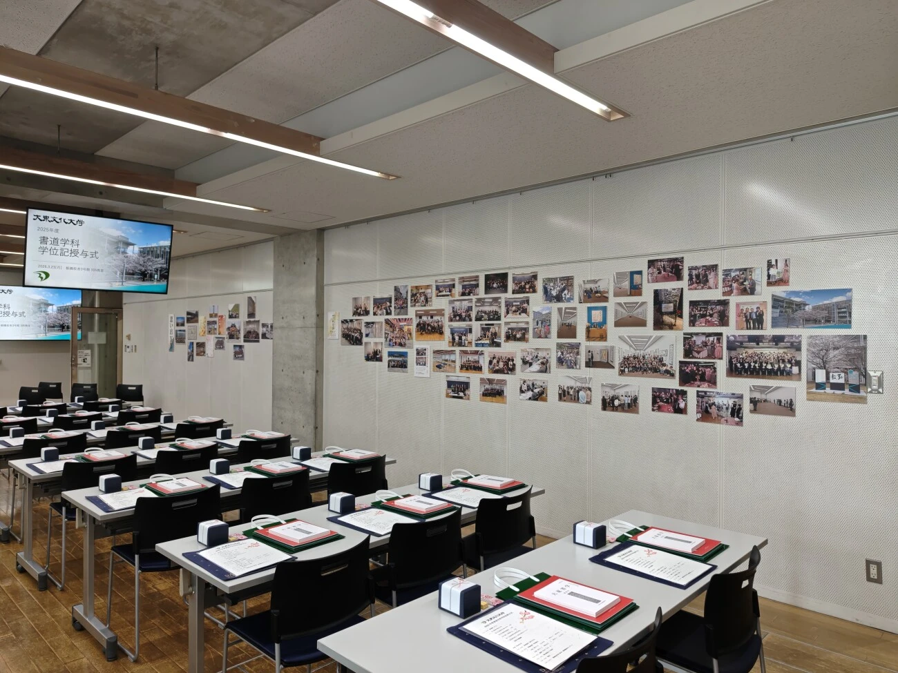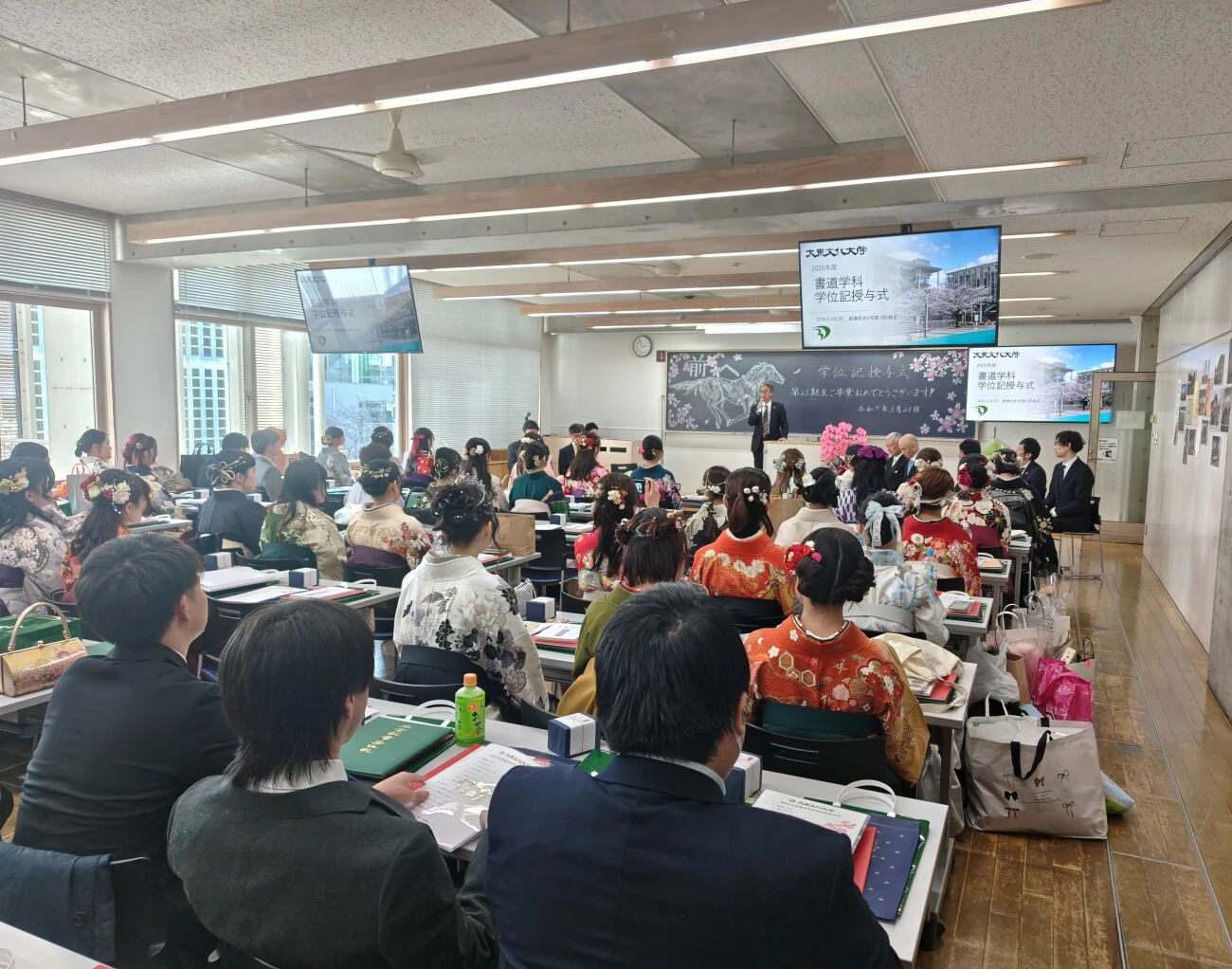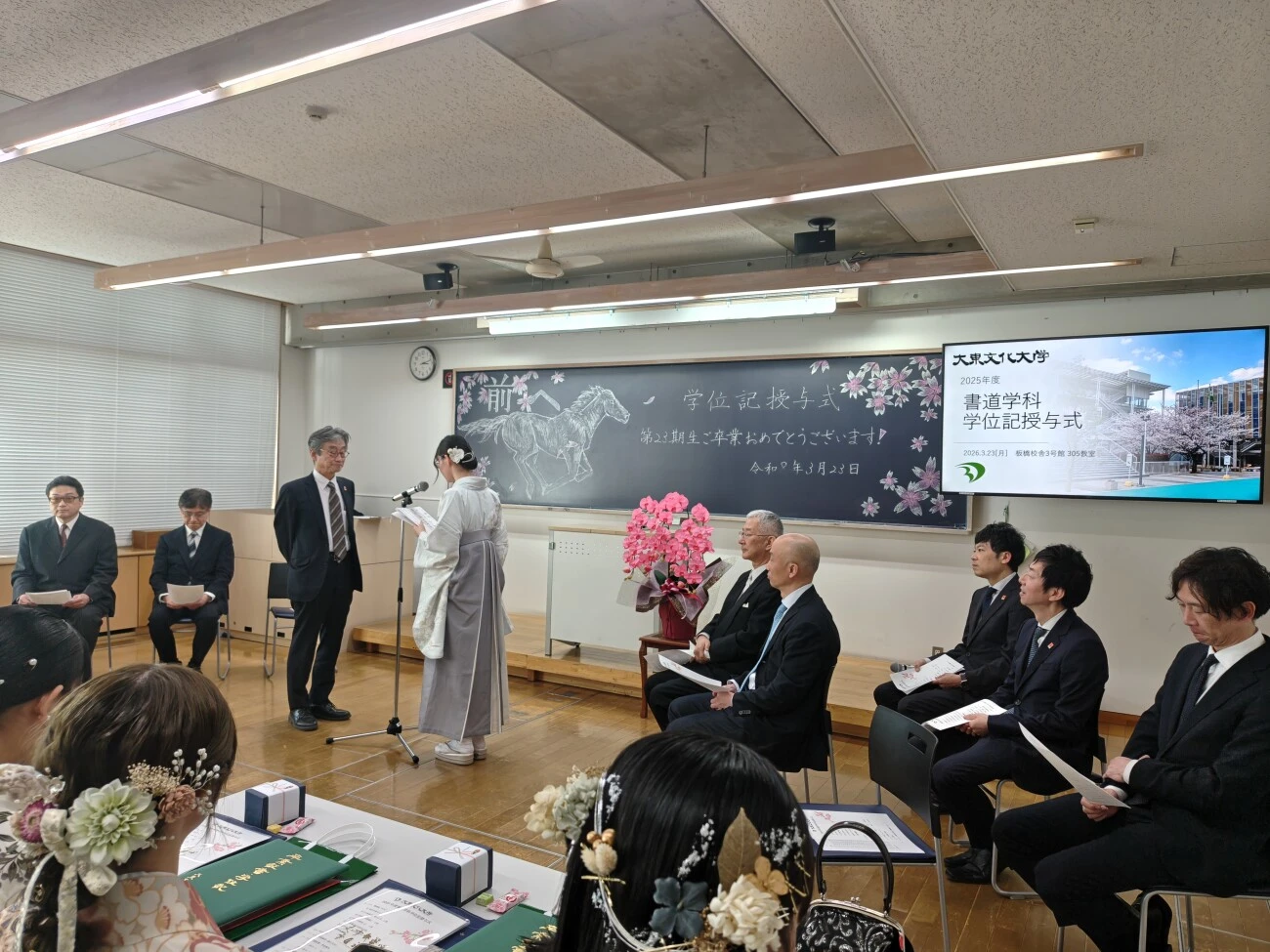 2026年3月23日(月)、2025年度書道学科学位記授与式を挙行しました。国際フォーラムでの卒業式終了後、板橋校舎に戻って、学位記授与式を挙行しました。