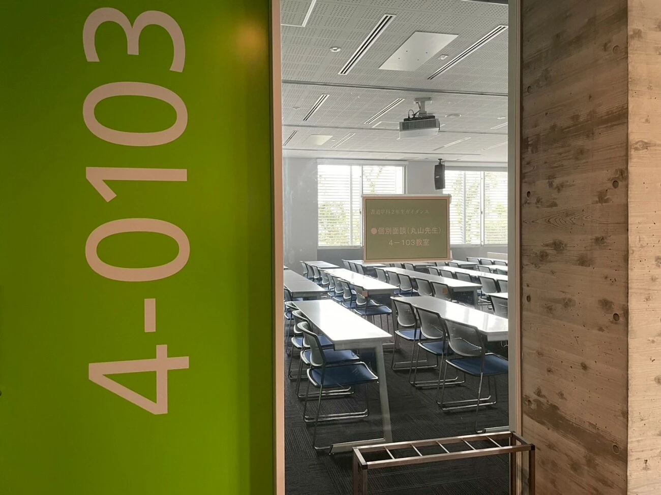 また、初年次教育の一環として、個別面談を実施しました。登録フォームによる事前アンケートをもとに1年次の振り返りを行いました。