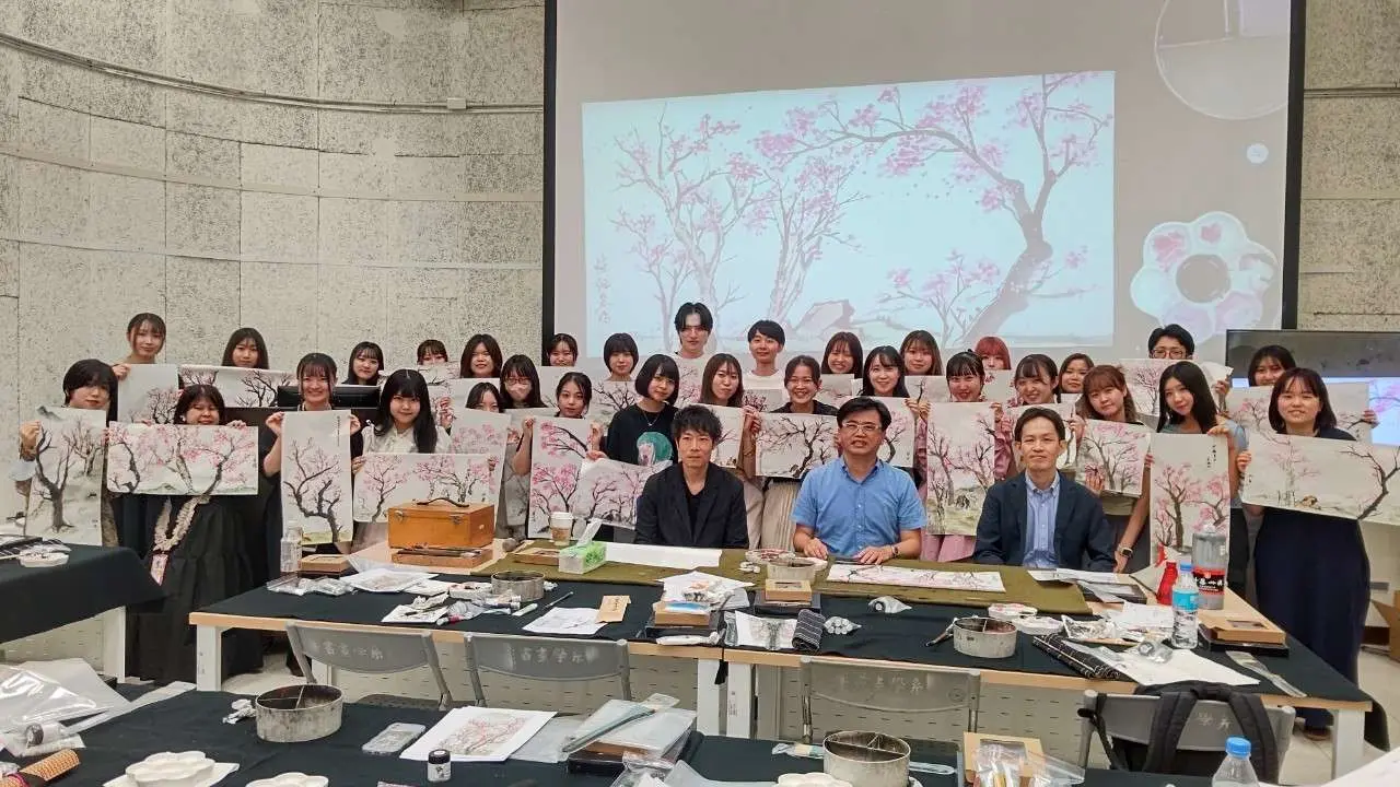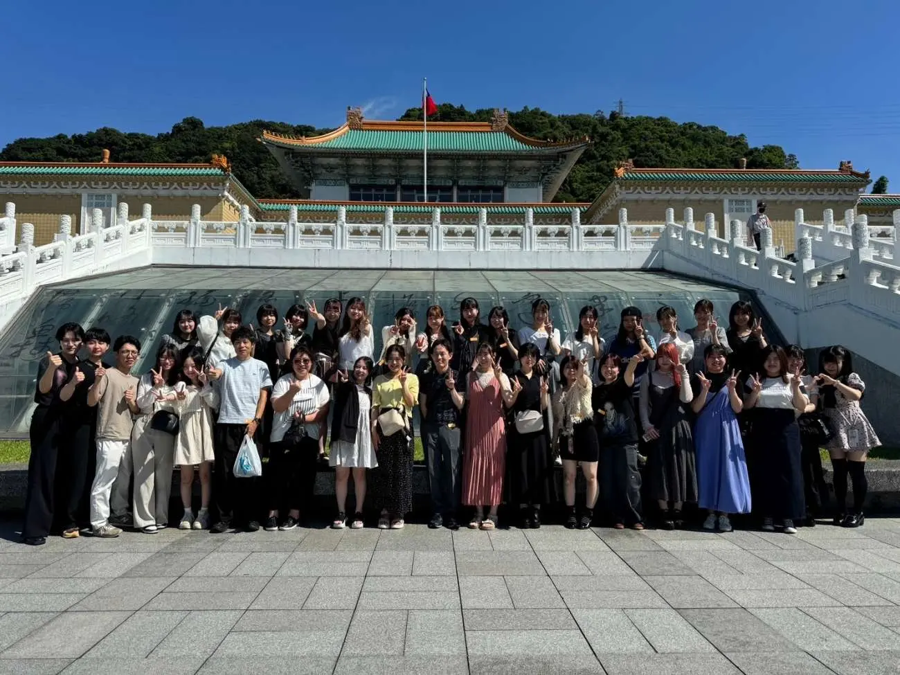昨年に続き台湾での実施となりましたが、本年度は例年の12月から7月実施に変更となりました。学生32名、引率教員2名が参加し、国立台湾芸術大学での書画研修や学生交流会、国立故宮博物館や中央研究院歴史文物陳列館、十份・九份などの見学を行いました。