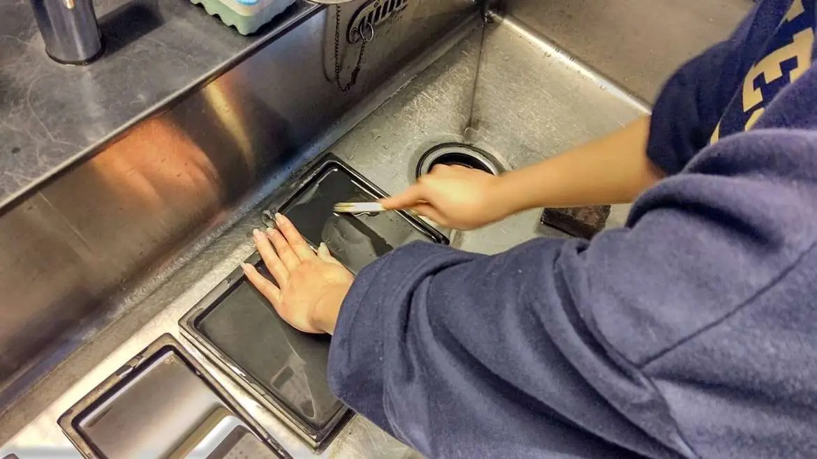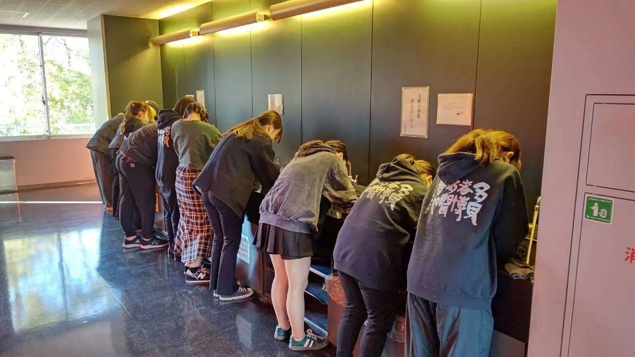 1/11、書道学科1年生の伝統行事である「硯洗い」を東松山校舎で実施しました。「硯洗い」は、汚れた硯を日頃の感謝の気持ちを込めて綺麗に洗うことで、こびりついた墨もお湯につけて割り箸やドライバーで削ぎ落とし、硯の陸(丘・墨堂)に砥石をかけて鋒鋩を立たせて、硯を蘇らせることができました。2年生オリターやTA、3年生の有志が参加してくれたお陰で、一昨年、昨年に続き(コロナ禍は中止)、後輩達に硯洗いの伝統を繋ぐことができました。
