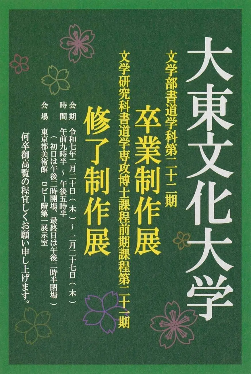 書道学科22期生 卒業制作展開催のお知らせ