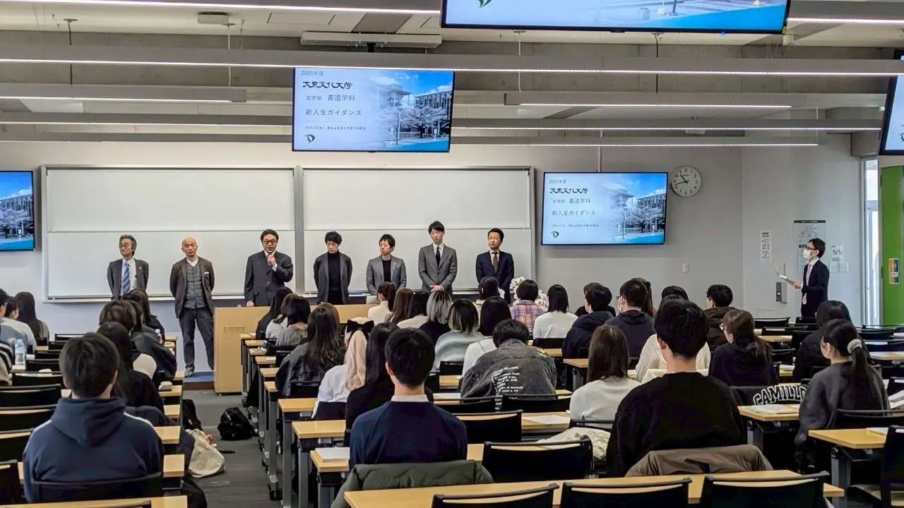 4月2日(水)、東松山校舎2号館309教室にて、書道学科新入生ガイダンスを実施しました。