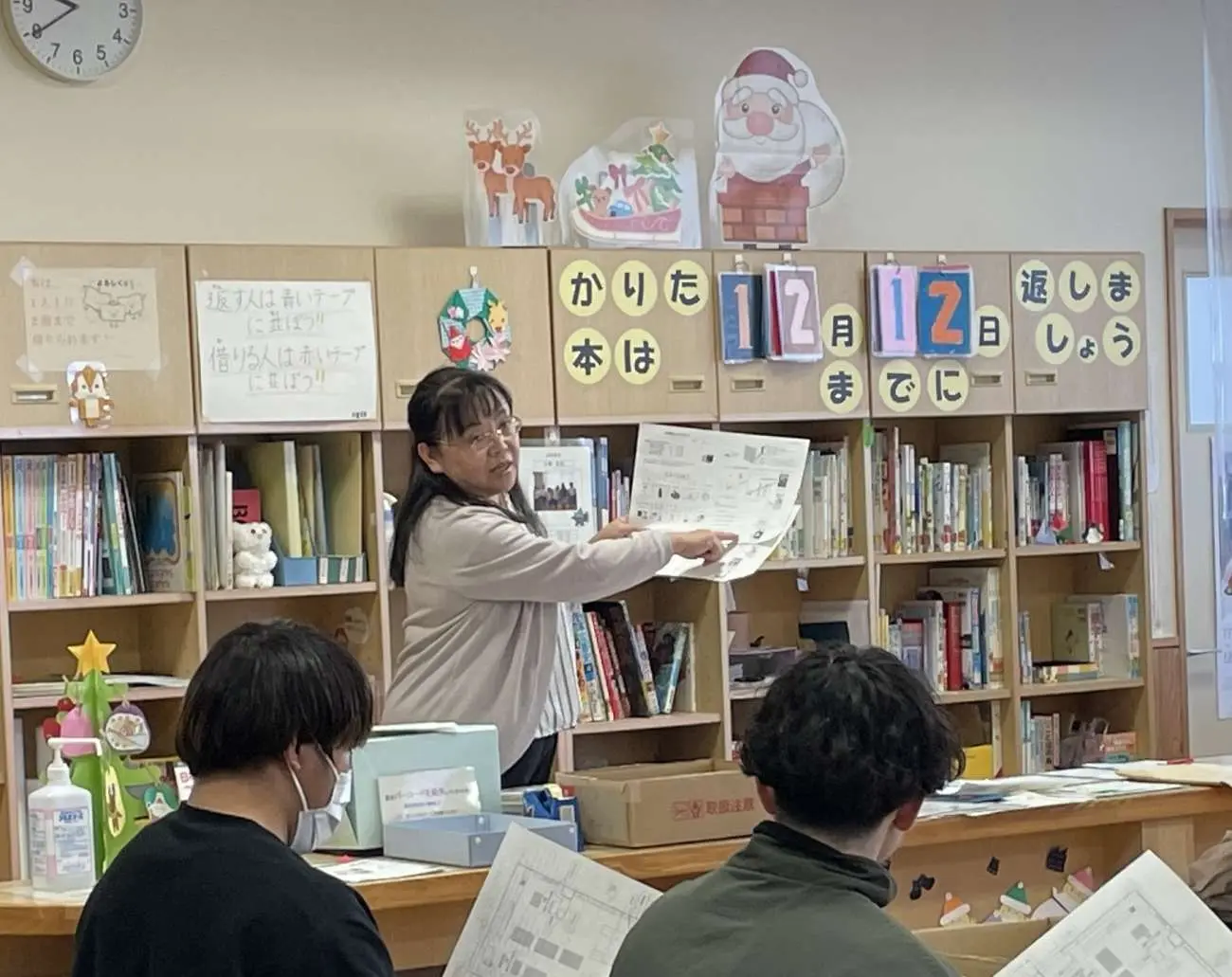 2024年12月12日(木)・19日(木)に、教育学科2年生の基礎演習(浜田久美子教授)の授業で東松山市立高坂小学校の学校図書館を見学しました。小学校教諭を目指す学生も多く、教師になったら学校図書館を活用してほしいという思いで企画しました。