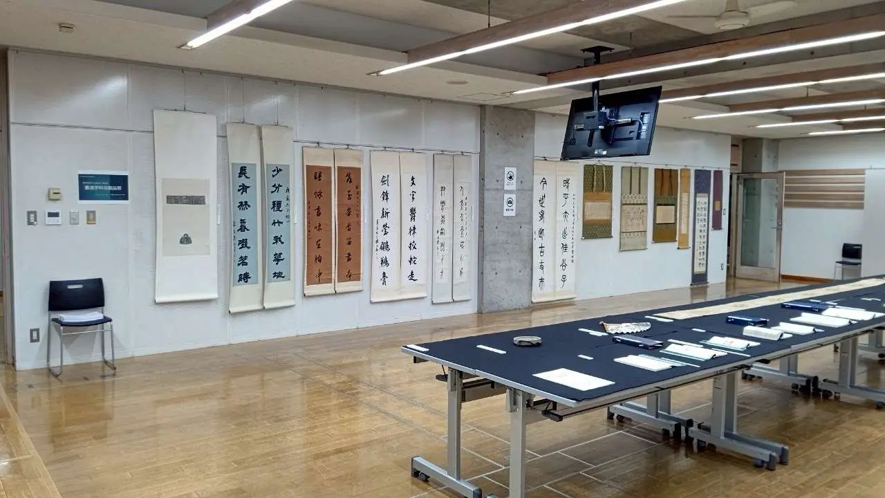 また、書道学科創設25周年を記念した特別企画として、「書道学科収蔵品展」が板橋キャンパス3号館3階305教室で開催されました。書道学科の収蔵品を広く公開する貴重な機会となり、学生達も熱心に鑑賞していました。