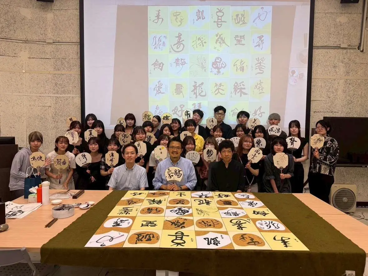 また、今年度は、國立臺灣藝術大學書畫藝術學系・大東文化大学書道学科(漢字文化実地演習履修者)による交流会が7/22(火)に板橋校舎で行われ、3号館3階のギャラリーでは7/21~7/25の期間、「書画交流展2025」が開催されました。