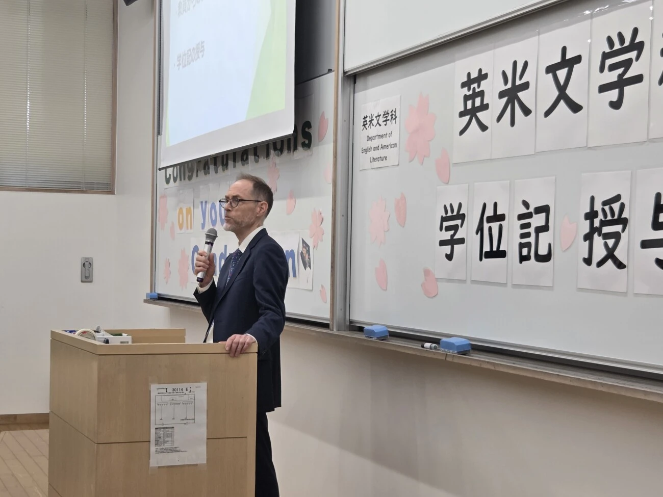 3月23日午後2時半より、板橋校舎の3号館にて、2025年度英米文学科学位記授与式が開