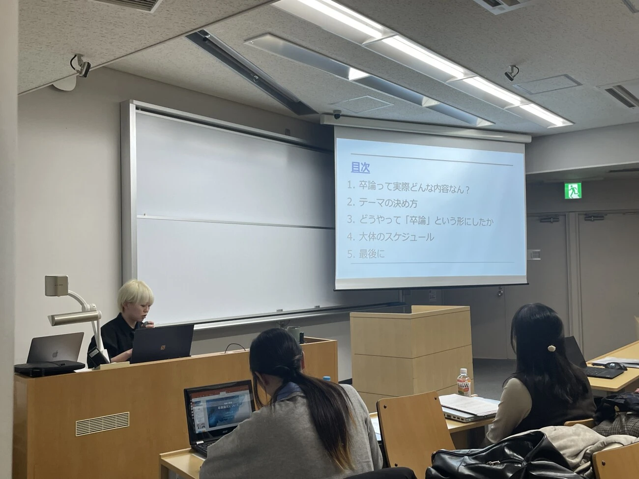 そして、本ガイダンスのメインイベントである、卒業生による発表がありました。