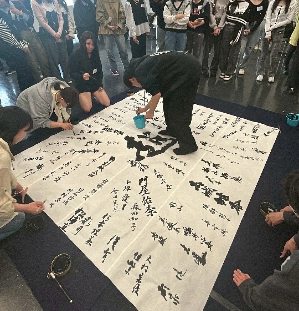 席書会では、先生方の揮毫に対する新入生の眼差しが熱く、各々の氏名を書く姿も今の意気込みを強く感じるものでした。(この寄せ書きは、4年次の学位記授与式の際に展示しています。)