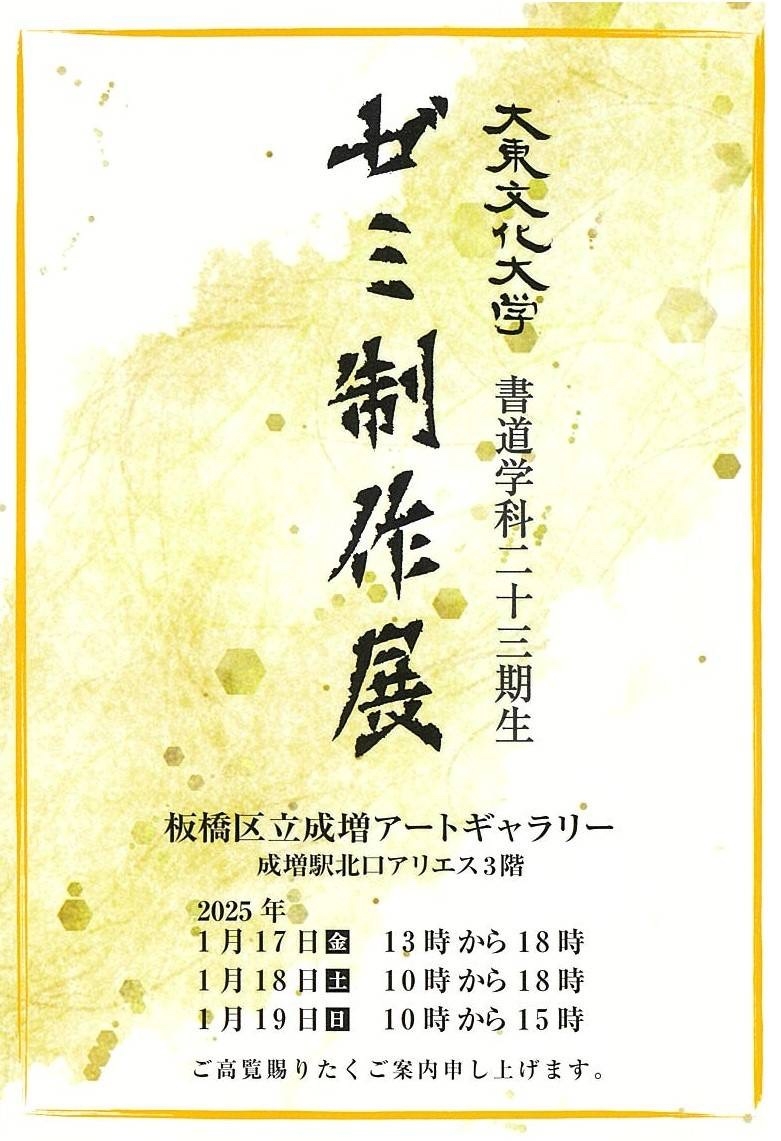 書道学科23期生によるゼミ展を、下記の通り開催いたします。 本展覧会は、3年生におけるゼミでの学習成果を発表する場としております。