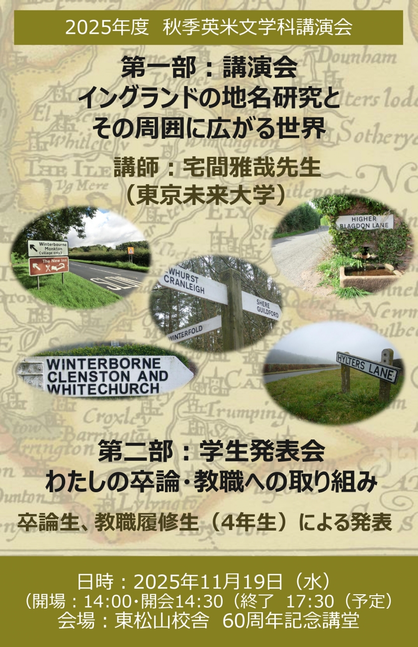 詳細は添付した「2025年度秋季英米文学科講演会のお知らせ」をご確認ください。