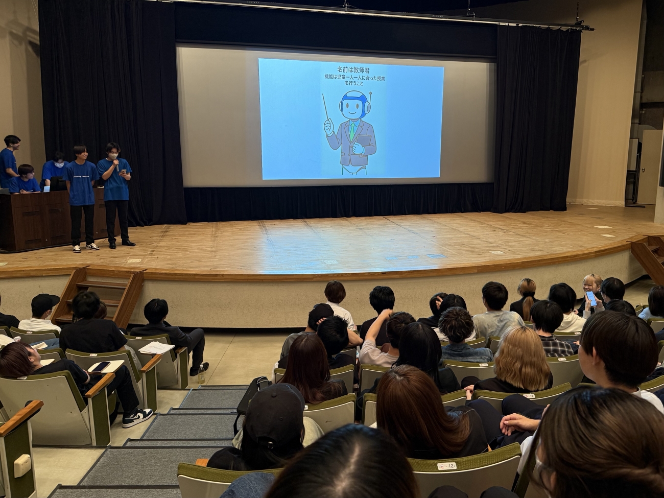 2025年5月21日、東松山キャンパス60周年記念講堂にて、教育学会の春季定例会が開催されました。春季定例会は教育学会運営委員会の学生が中心となり、新入生を含めた教育学科生の親睦を深めるためのイベントです。今年度は「AIとの距離感、近過ぎ危険、遠すぎ無縁」というテーマを設定し、近年話題になっているAIの使い方についてゲーム形式で学び合い、交流を深めました。