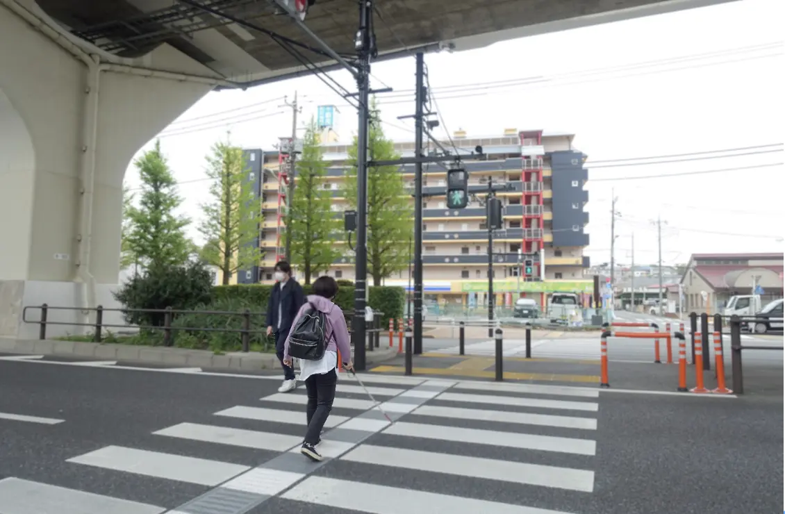 設置を求めて署名活動を行ってきた山口ゼミでは、今年度初めてのゼミの日に、全盲のゼミ生秋元さんと一緒にバス停までのルートを辿ってみました。秋元さんはしっかりとした足取りで横断歩道を渡り、ひとりでの歩行を披露してくれました。