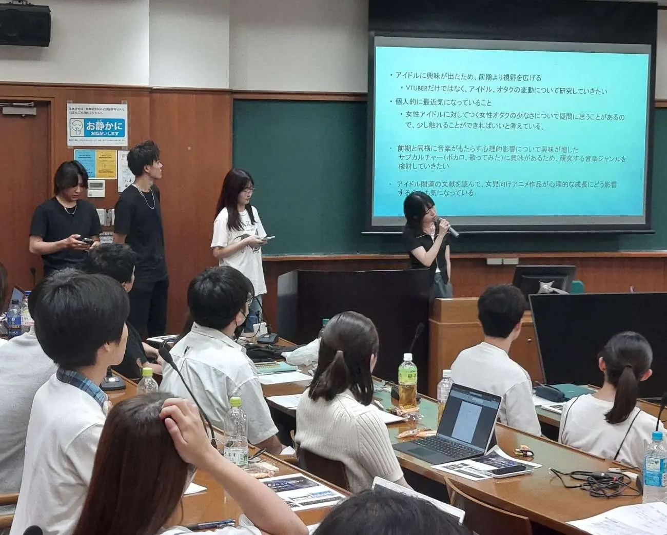 近藤ゼミからは、年度末の研究発表の中間発表として、各グループの研究内容を発表しました。メディア研究に相応しく、「公開オーディションとファン」、「若者がTikTokに熱中する理由は何か」、「写真がつくる思い出の共有ーアナログとデジタル」、「リアルを推すVSキャラを推すーアイドルとVTuber」など本ゼミとの関連も深く、興味深い内容でした。