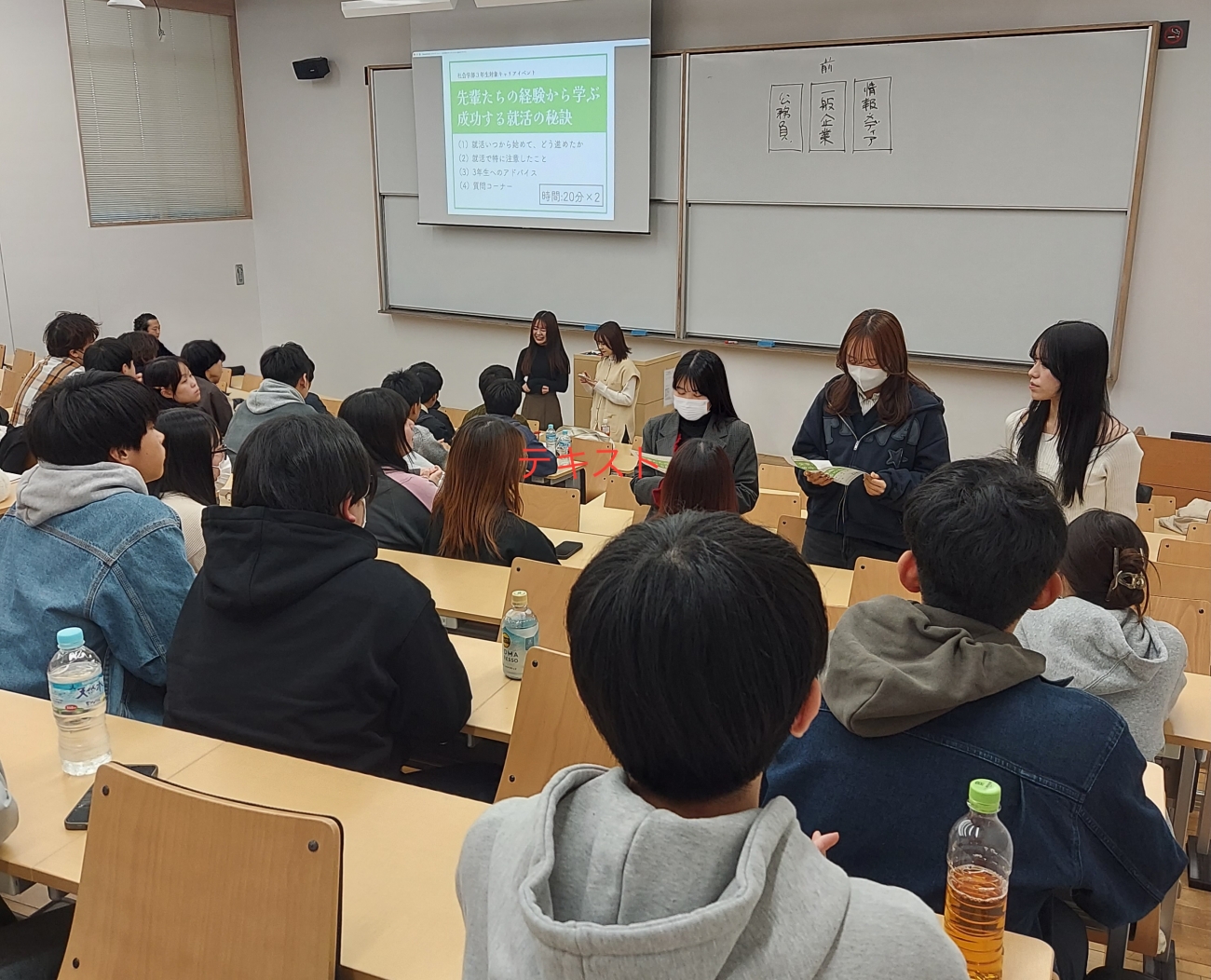 現4年生から内定報告及び就職活動アドバイスを行われ、3年生の就職活動を