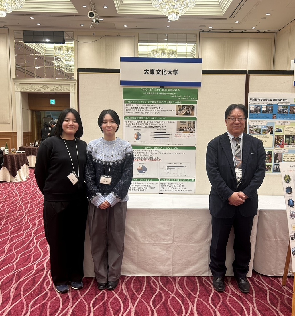 阿部英之助先生が担当する社会学演習Ⅱ(阿部ゼミ)の学生2名が、2月6日に江戸川区で開催された鶴岡市市政報告会で、鶴岡市に関する調査成果を発表しました。