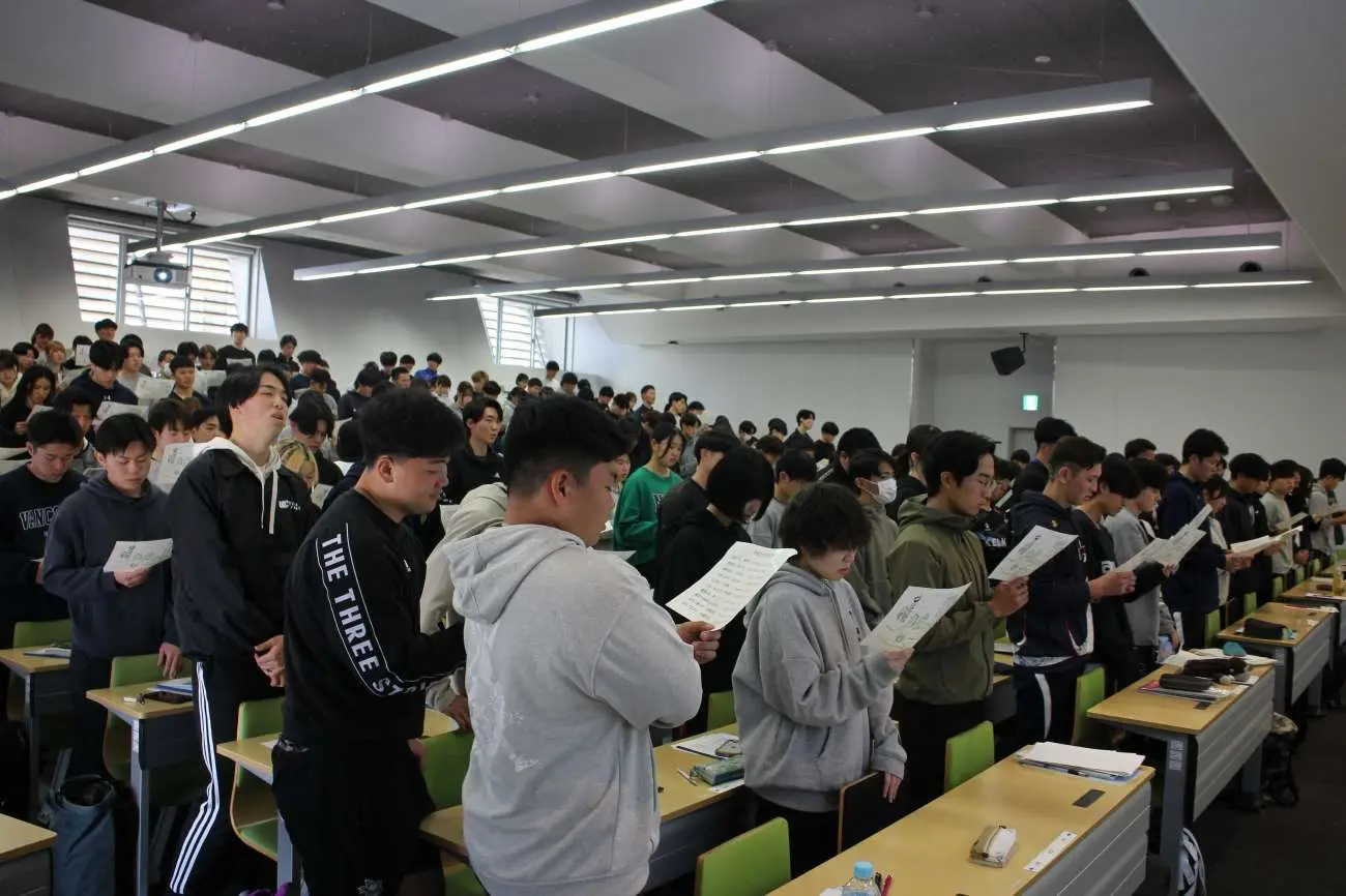 緊張感の漂う中、新入生全員が真剣に取り組んでいました。