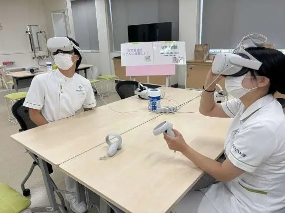 看護学科の体験コーナーでは、聴覚障害のVR体験をはじめ、フィジカルアセスメントの体験や、小児への看護体験などを通し、大学での学びを体験していただきました。