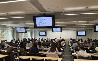 大学での講義開講前の企画ですが、新入生は真摯に講義を視聴していました。