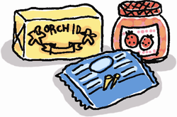 Di pasar swalayan itu dijual bermacam-macam bahan makanan. Hari ini ia membeli roti, mentega, selai, keju, telur, dan daging ayam.