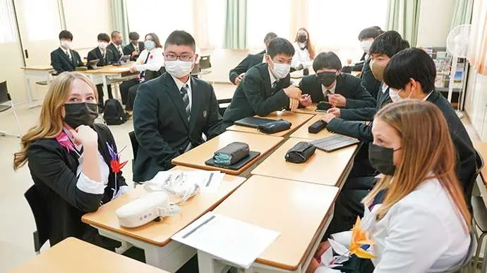 一高では海外からの留学生を積極的に受け入れ委、授業や紺法独自の様々なプログラムを通して交流を深めています。長期留学制度、短期語学研修などの制度も充実しています
