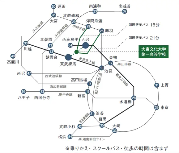-赤羽駅西口下車「赤羽駅西口-成増駅北口」大東文化大学バス停下車(約 20 分)