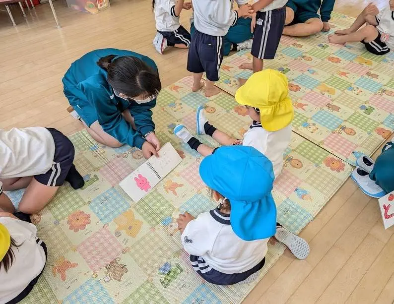 6月19日(水)、家庭科選択3年生授業で「幼稚園児とのふれあい学習」を青桐幼稚園にておこないました。自ら作成した絵本の読み聞かせや、室内遊びで幼稚園児の皆さんと交流しました。