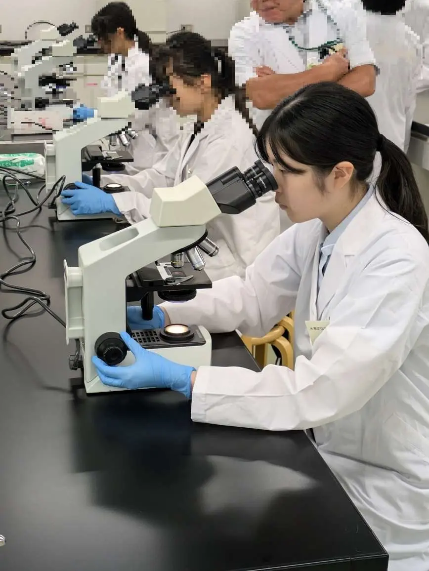日本薬科大学にて、高大連携事業の一環として「高校生細菌学実習」が実施されました。本校から2名の生徒が参加し、食品に含まれる酵母や菌を染色して観察する実習を行いました。