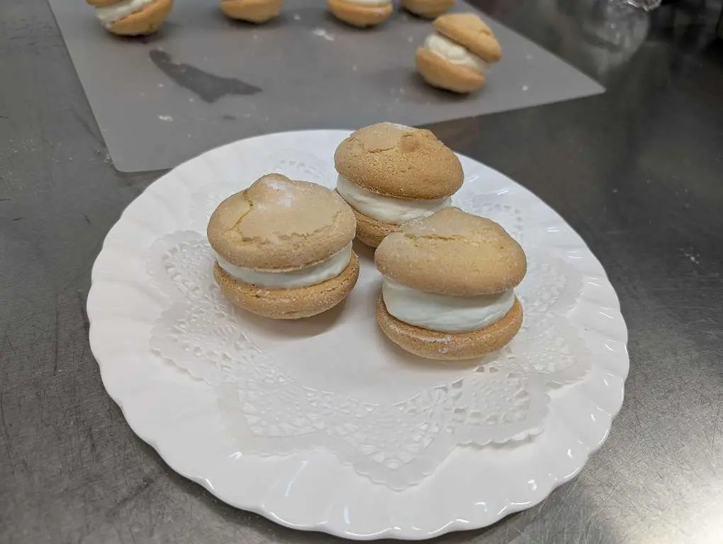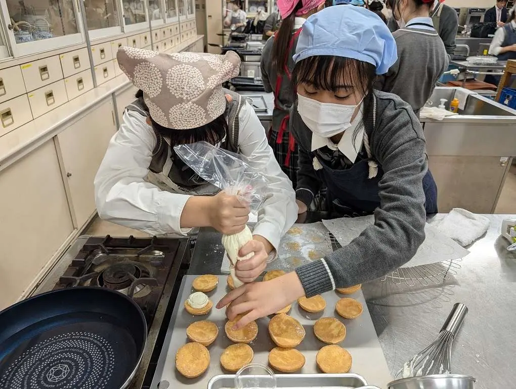 完成したチーズブッセは、ふんわりとした生地に滑らかなチーズクリームが絶妙に挟まれた仕上がりとなり、部員たちも達成感とともに、学びを深める貴重な機会となりました。