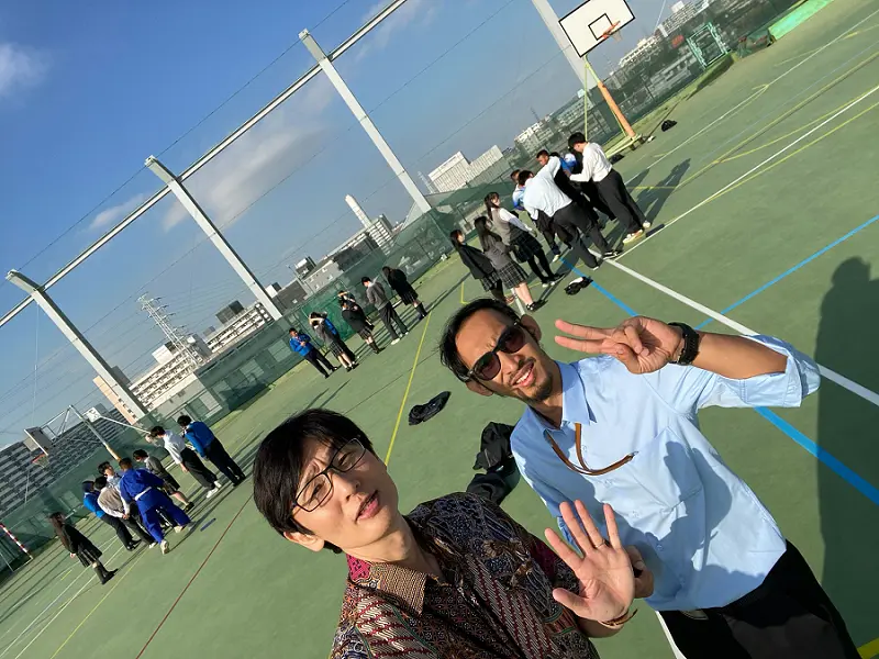 インドネシアからの来校者と英語を交えて楽しく交流しました。