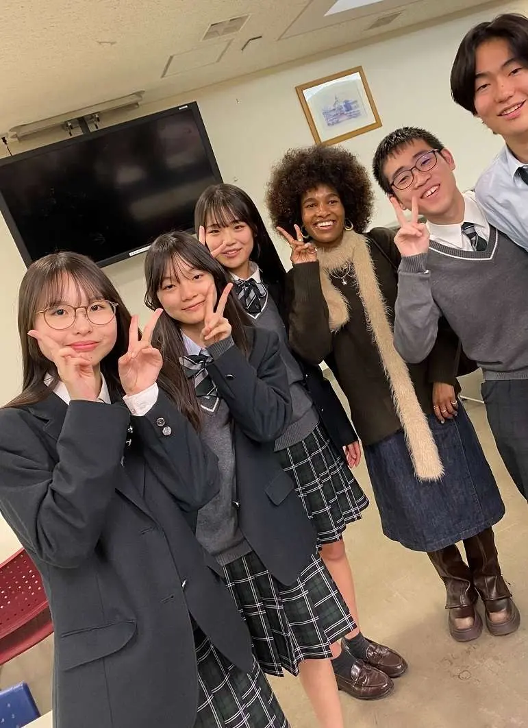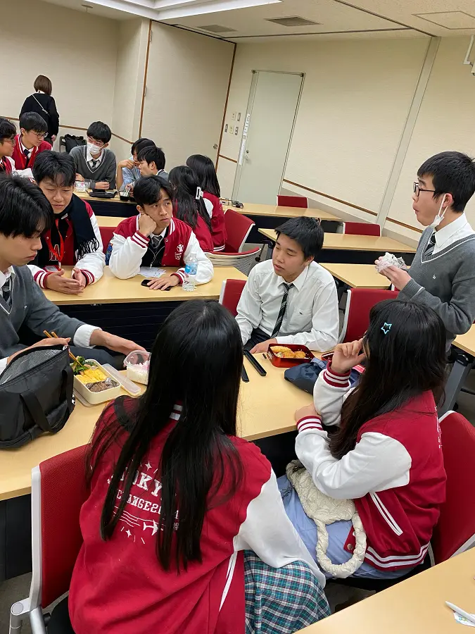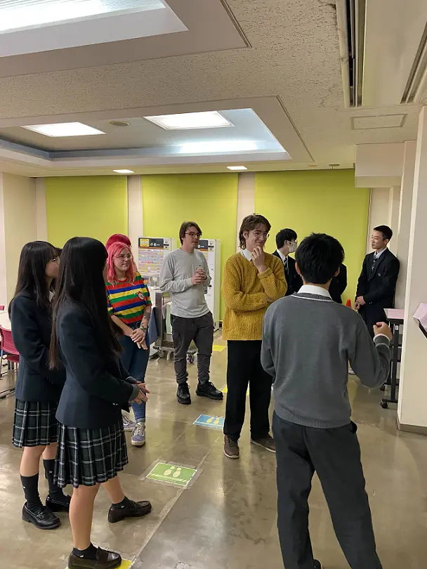 ニューヨークの生徒たちと交流しながら、フランス出身の来校者とも楽しい時間を過ごしました。