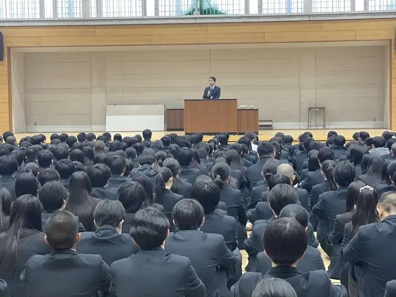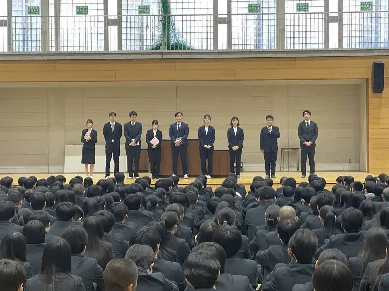 校長先生からは「信頼される人を目指してほしい」とのお話があり、生徒たちは真剣な表情で耳を傾けていました。
