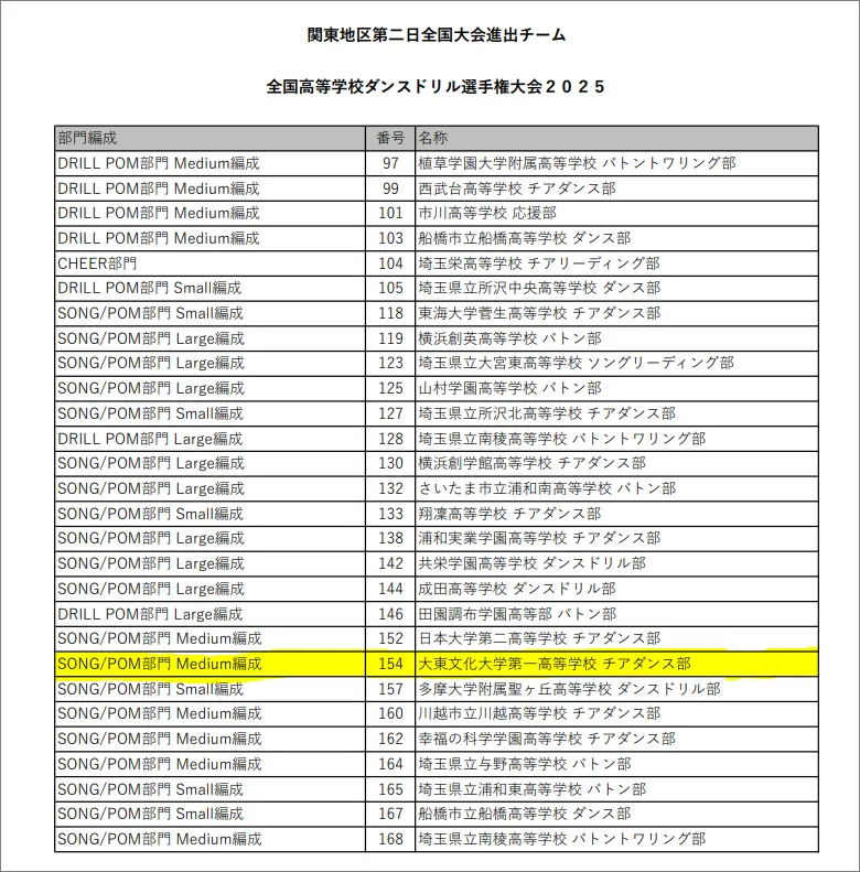 6月15日(日)に東京体育館にて行われた「全国中学校・高等学校ダンスドリル選手権大会2025 関東大会」にmediumの1チームが出場し、以下の成績を収めました。