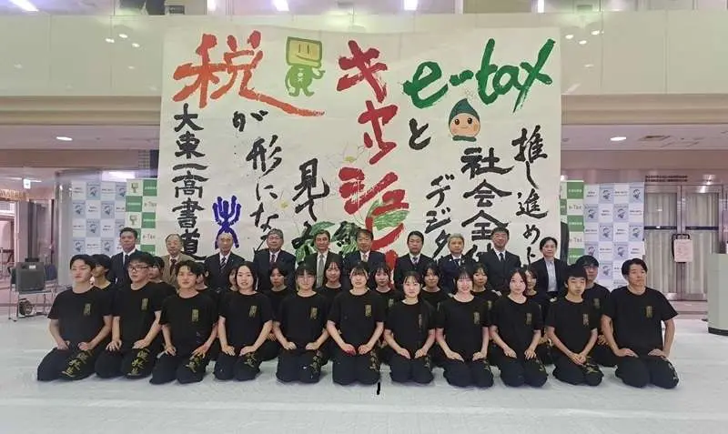 11月11日(火)、本校書道部が板橋区役所1階ロビーにて開催された「税を考える週間」関連イベントにおいて、書道パフォーマンスを披露しました。多くの区民の方々にご覧いただき、力強い筆さばきと部員たちの想いをお届けする貴重な機会となりました。