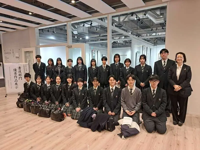 12月26日、大宮のRaiBoC Hall(市民会館おおみや)にて、「かがわ総文2025(書道部門)」の受賞作品展示会および開会行事が開催されました。当日は、午前中に書道部員全員で受賞作品の展示を見学しました。