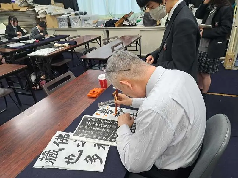 1月29日、本校書道部は、大東文化大学副学長・書道学科教授の河内利治先生をお迎えし、書道のご指導をいただきました。