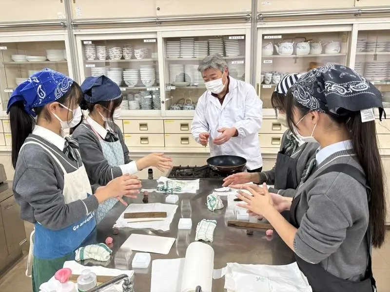 2月7日(土)、板橋区常盤台にある「御菓子司 泉屋」様を講師にお招きし、和菓子作り体験を行いました。泉屋様には、茶道部の活動に合わせて、毎回、季節感あふれる主菓子を作っていただいています。