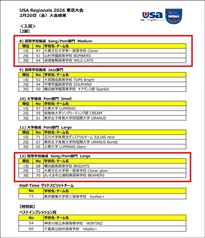この結果により、両チームともに3月末に開催される全国大会「USA Nationals 2026」への出場権を獲得いたしました。