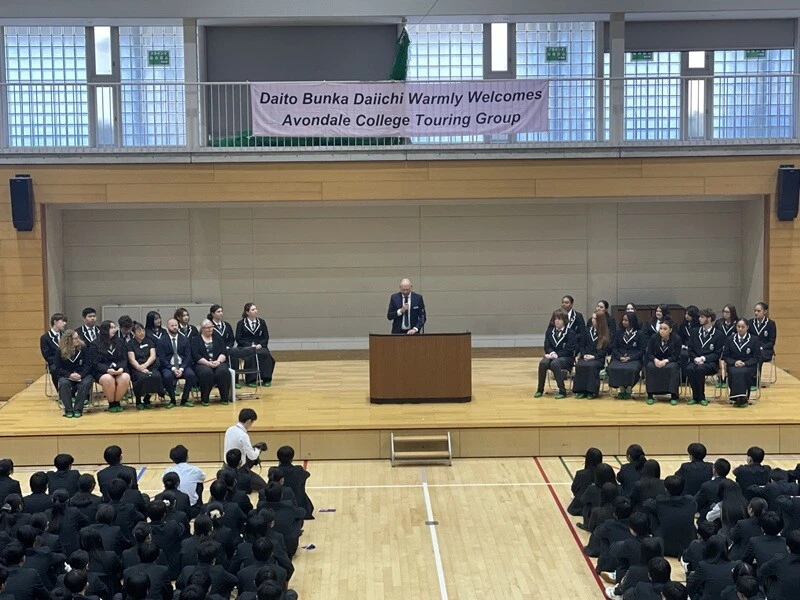 本校の姉妹校であるニュージーランドのアボンデール・カレッジ(Avondale College)より、研修団の皆さん総勢26名(生徒22名、教員4名)が来校されました。