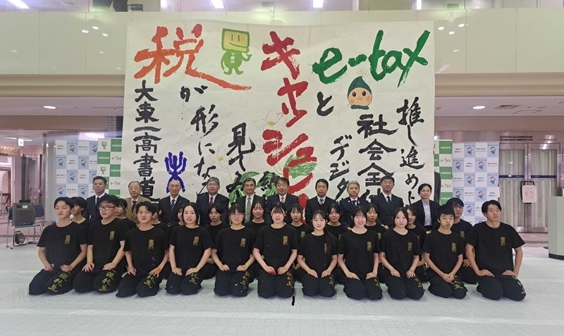 11月11日(火)、本校書道部が板橋区役所1階ロビーにて開催された「税を考える週間」関連イベントにおいて、書道パフォーマンスを披露しました。多くの区民の方々にご覧いただき、力強い筆さばきと部員たちの想いをお届けする貴重な機会となりました。