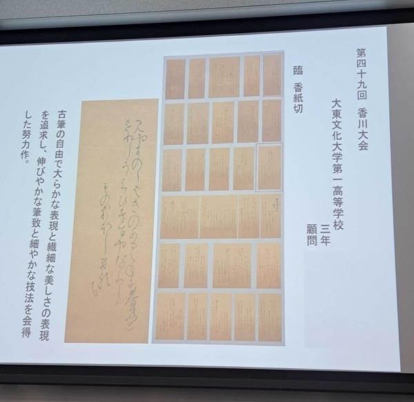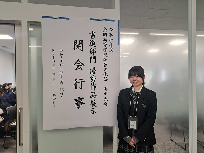 12月26日、大宮のRaiBoC Hall(市民会館おおみや)にて、「かがわ総文2025(書道部門)」の受賞作品展示会および開会行事が開催されました。当日は、午前中に書道部員全員で受賞作品の展示を見学しました。