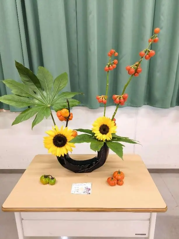 | 実績 | 文化祭で部員1人1人が自由花とお生花をそれぞれ生けて展示します。 ![]() |