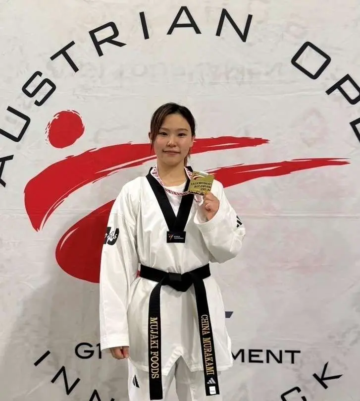 村上智奈さん(2025年国際関係学科卒=ムジャキフーズ)が2025オーストリア国際オープンテコンドー選手権大会(G1)女子49㎏級に出場し、ノーシードから4戦を勝ち抜き、金メダルを獲得しました。